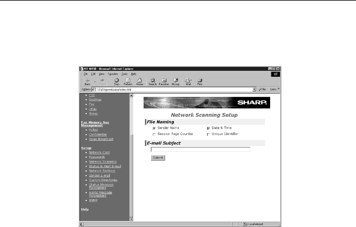 Click "Network Scanning" in the menu frame, and then establish the required settings. These settings should only be