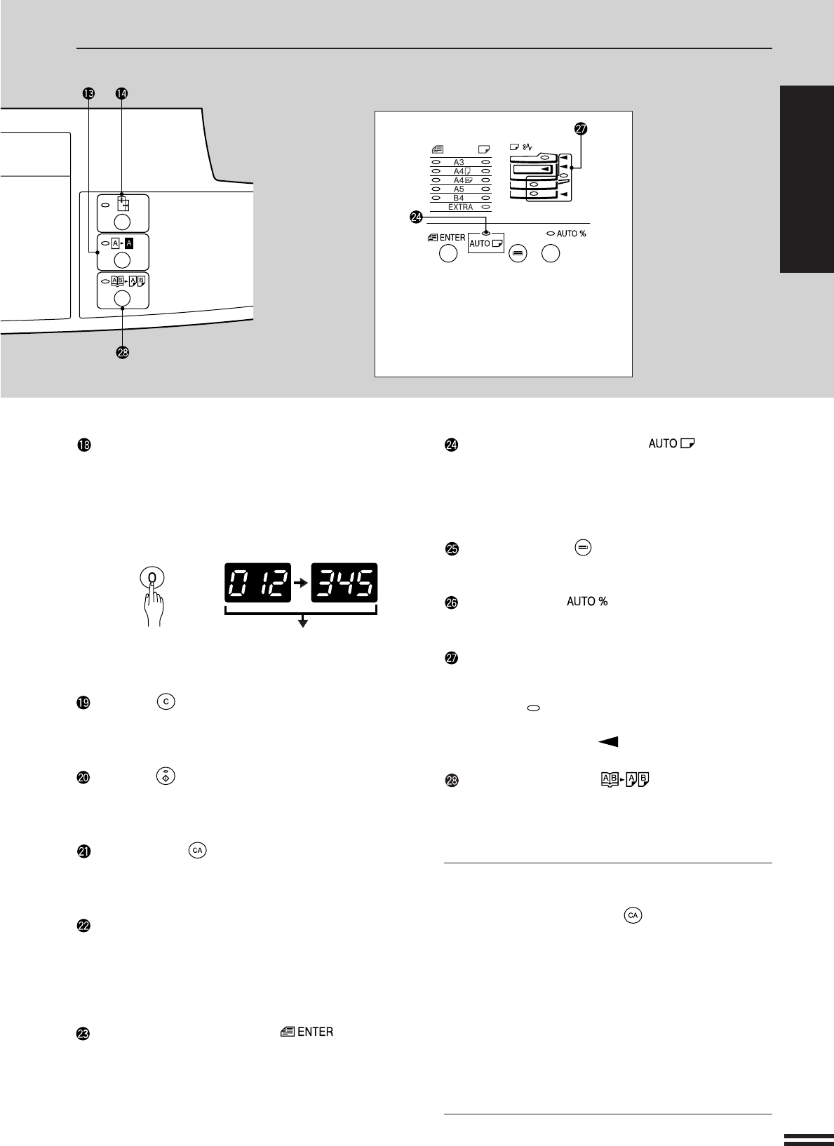 Use to sequentially select preset reduction/enlargement