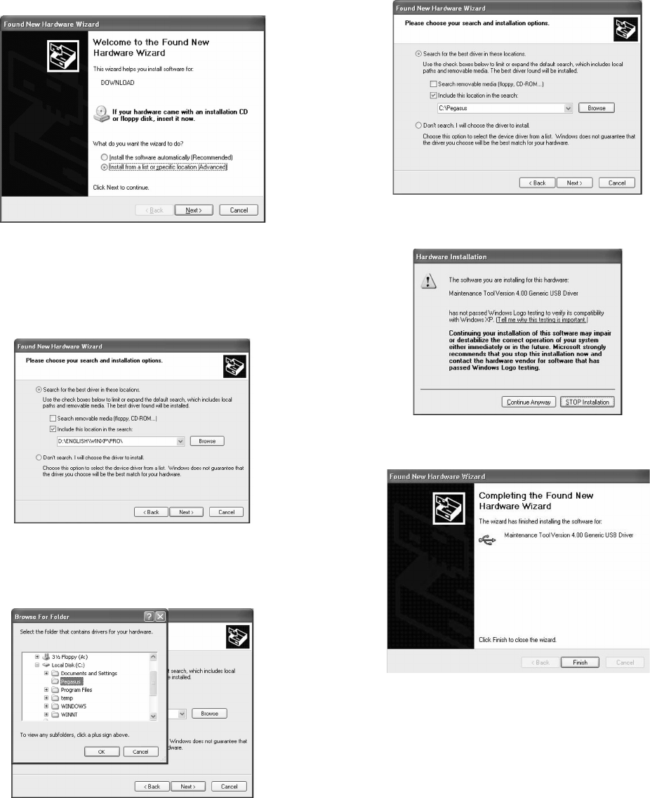 (When the driver is included in the "C:\Pegasus" folder:)
