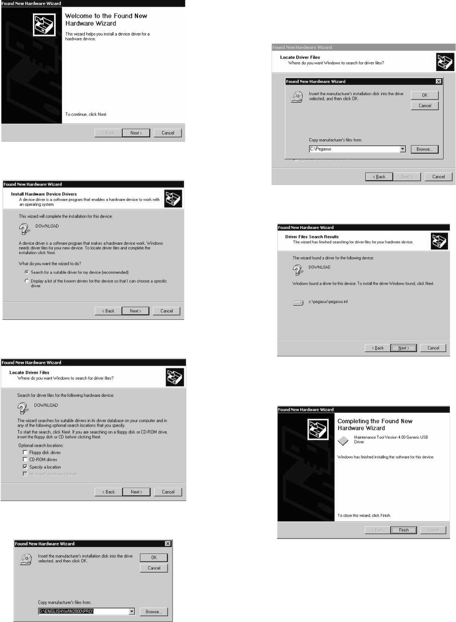 driver (Pegasus.inf) is properly displayed, and press the OK button.