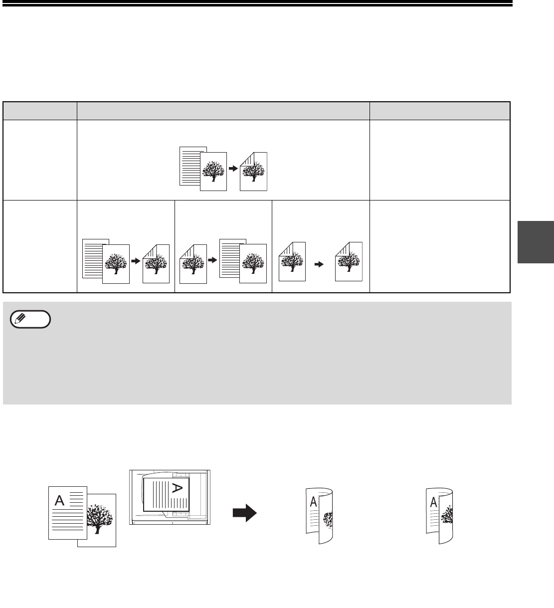 DUPLEX COPYING" (p.25) or in the system settings (p.69), and then follow the steps below. In particular, when