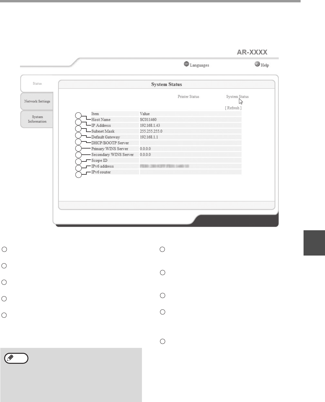 To display the "System Status" window, click "System Status" on the "Status" tab.