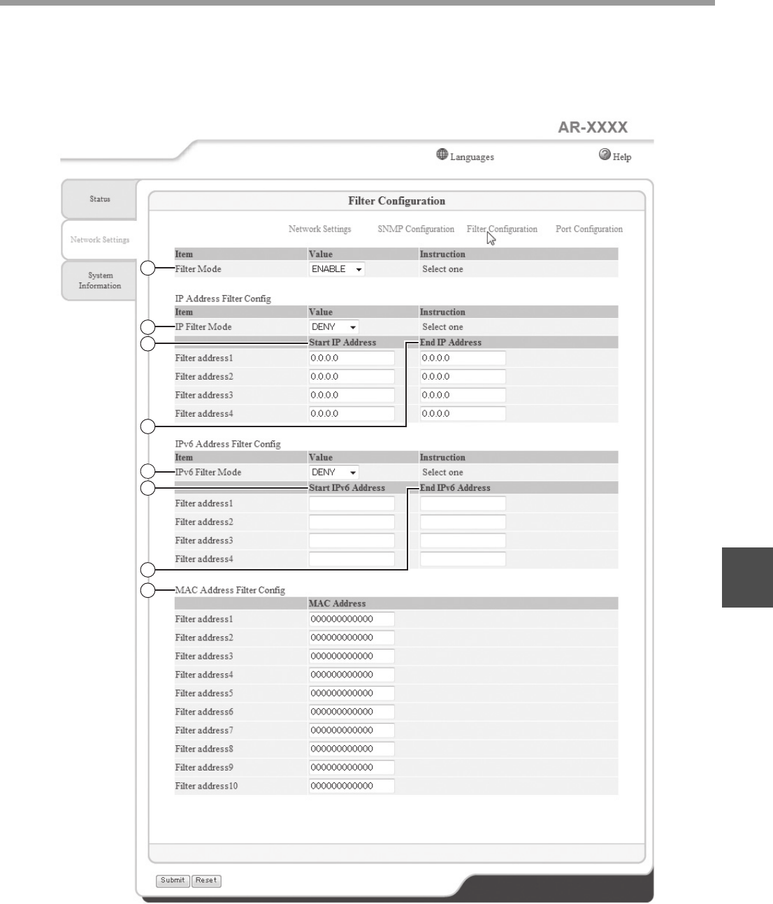 To display the "Filter Configuration" window, click "Filter Configuration" on the "Network Settings" tab.