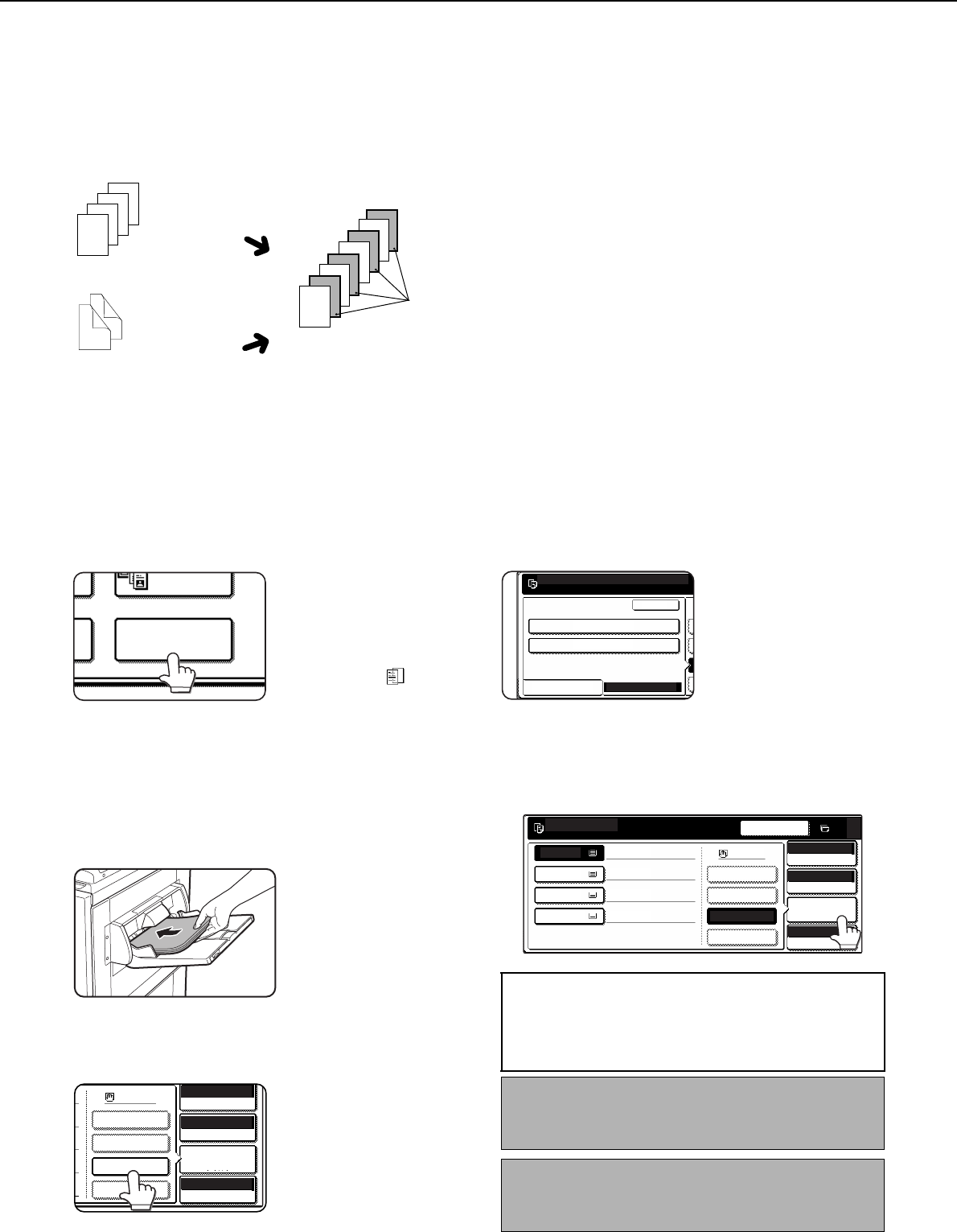 * If the optional saddle stitch finisher is installed, touch the [FINISHER TRAY] key to set the output tray to the finisher tray.