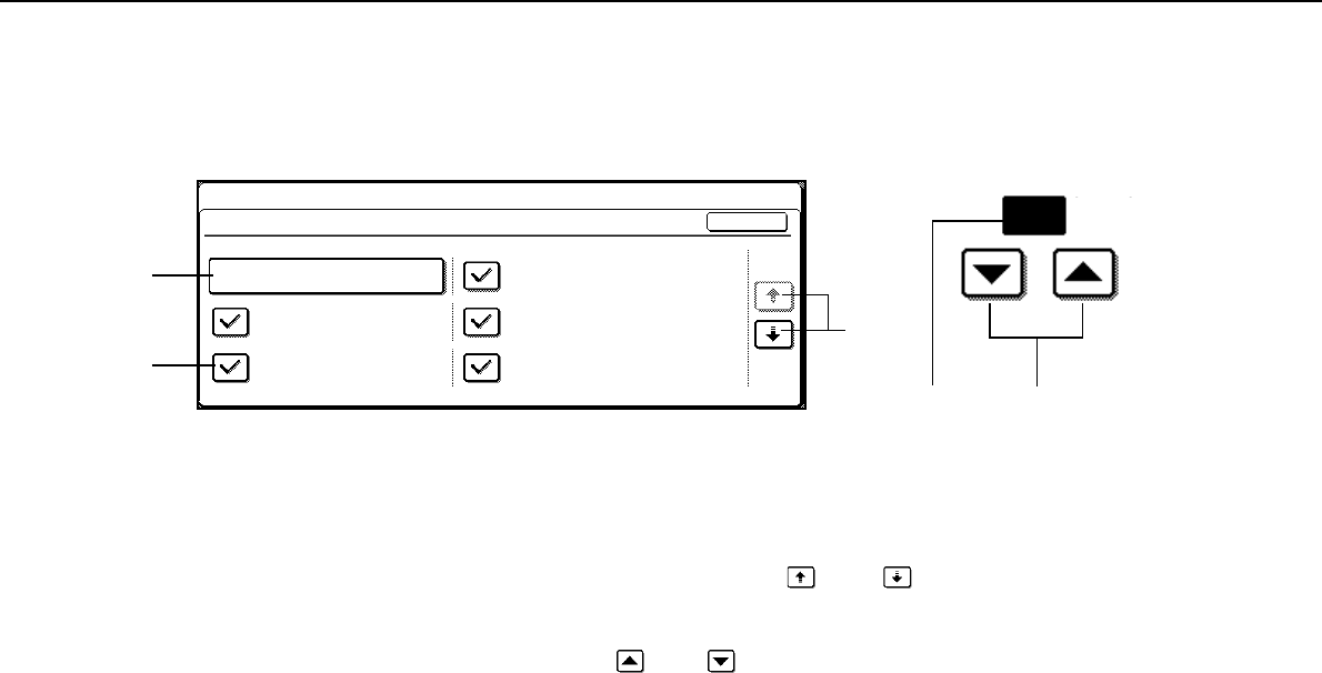(B) Check mark boxes are touch keys that show the status of selections. A box with a check mark means the