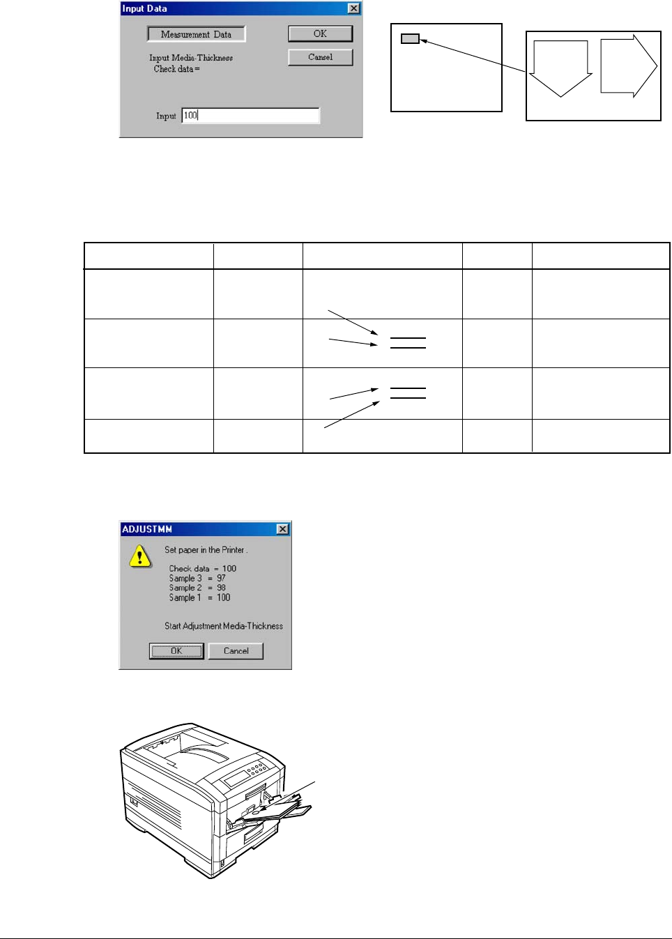 (2) After the completion of the thickness entry of the fourth sheet, the ADJUSTMM screen is