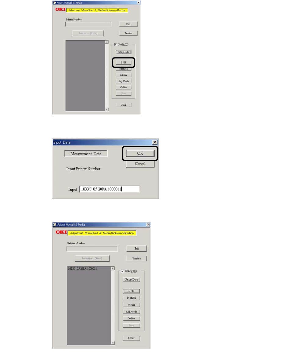 (11) When the electronic serial number input is completed properly, the Adjust Munsell & Media