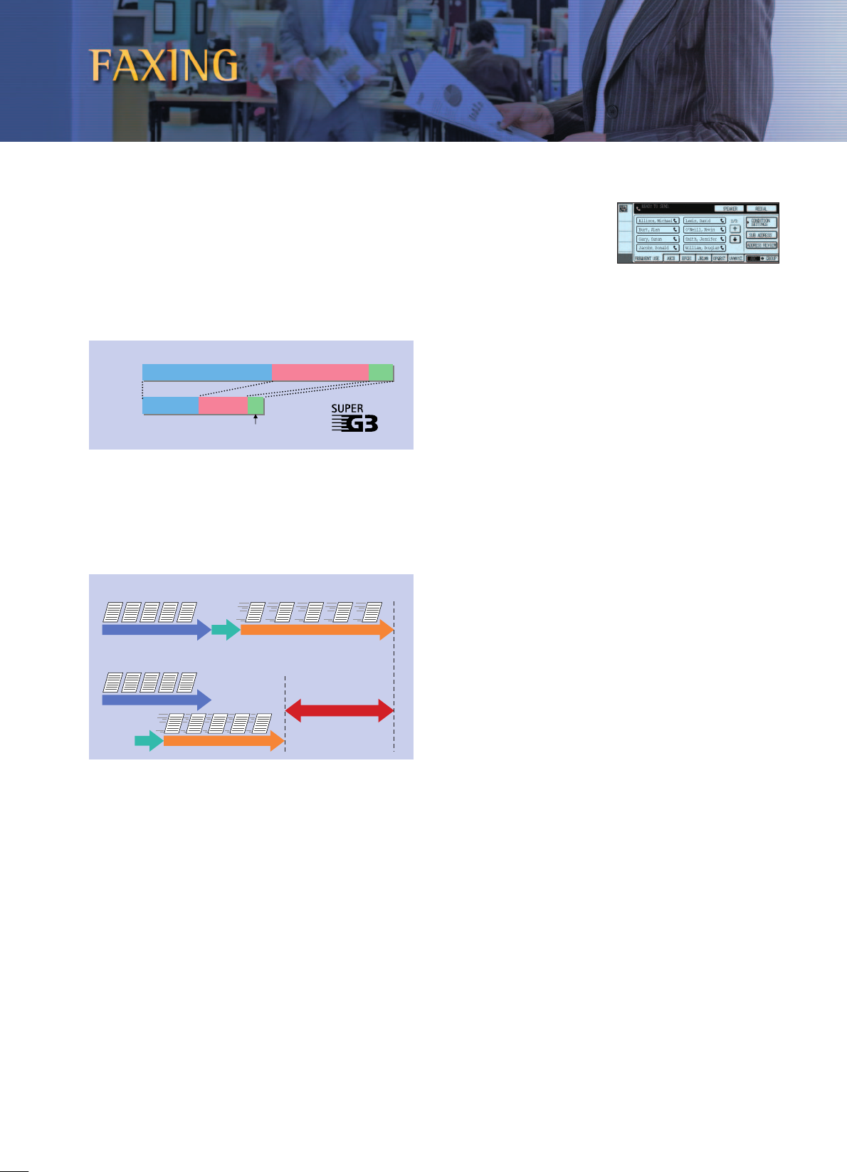 Super G3 fax mode and a variety of efficiency-enhancing features