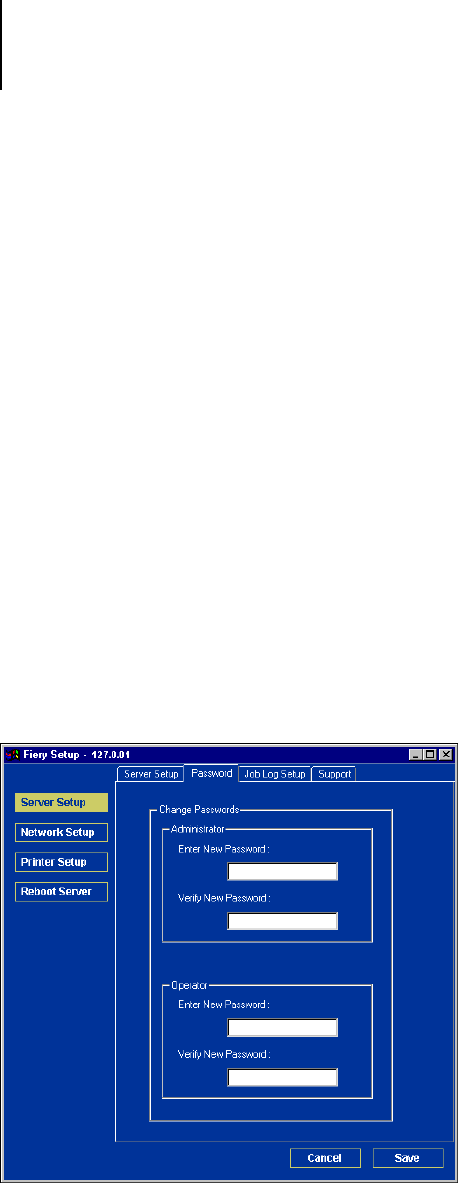 password to protect the Fiery from unauthorized changes to