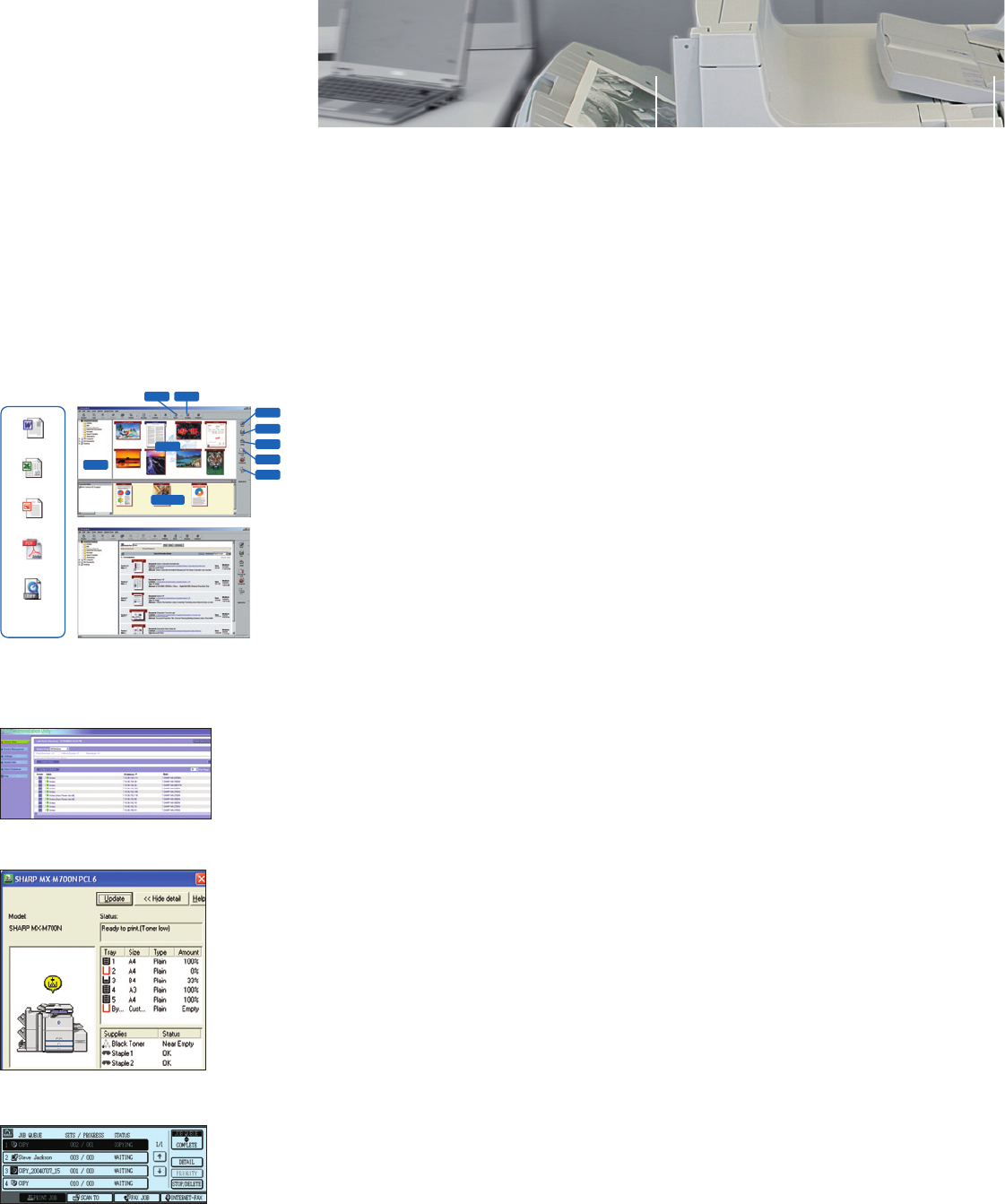 Sharp’s original document management software, Sharpdesk™, lets you manage documents