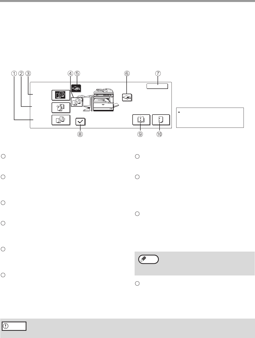 Touch the [OUTPUT] key in the main screen of copy mode to display the screen for selecting saddle stitch