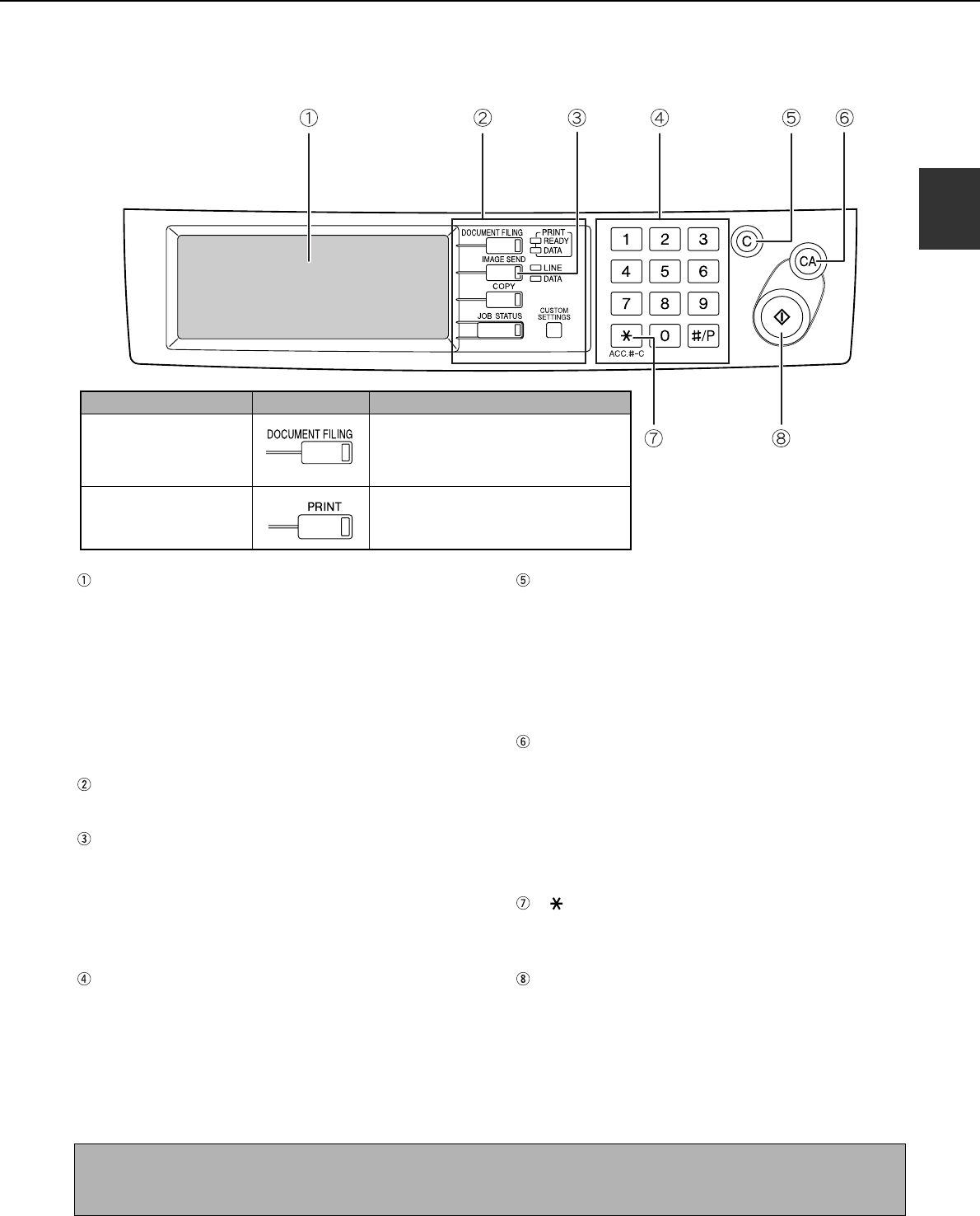 The operation panel used for the fax function is described below.