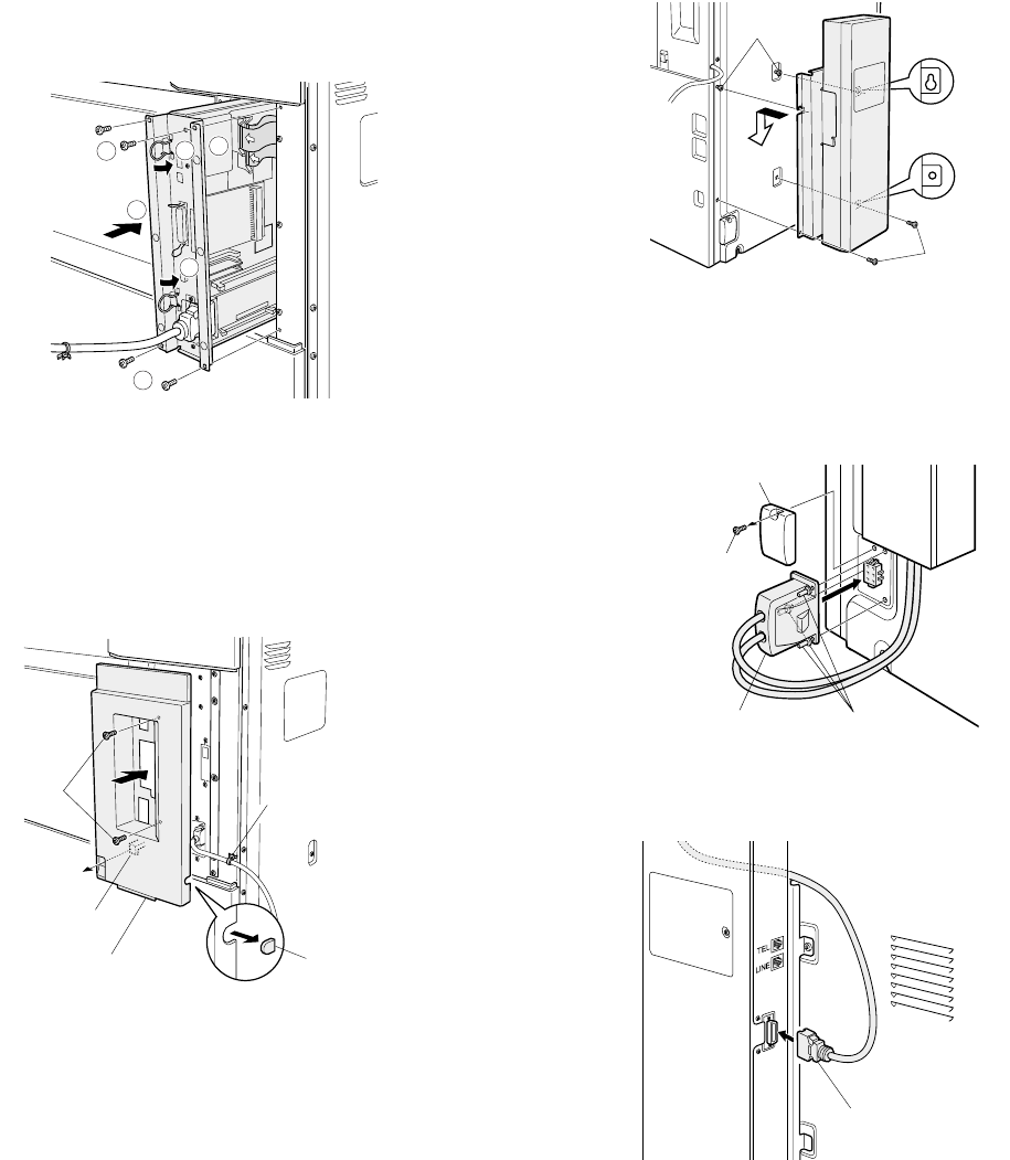 Then, hang the FAX box unit on the two loosened screws and secure