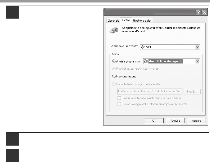 "Avvia il programma", poi "Sharp Button Manager T" dal menu a discesa e fare
