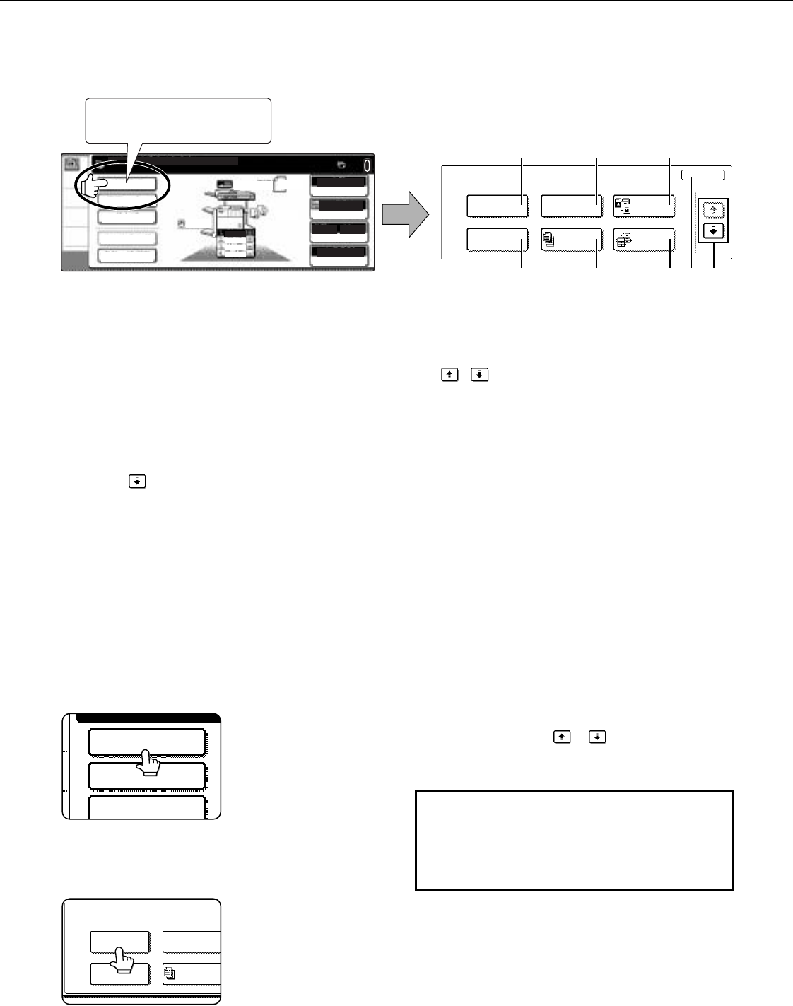 Touch the [SPECIAL MODES] key in the main screen of copy mode to open the special modes screen. The following