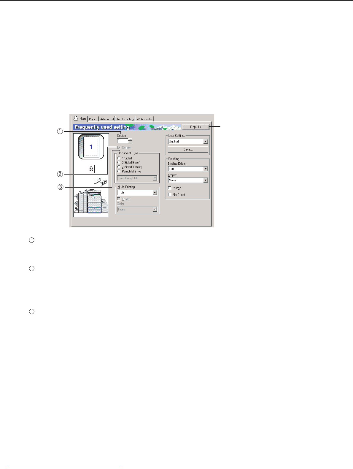 application. The print functions can also be selected in the printer driver properties window that appears when