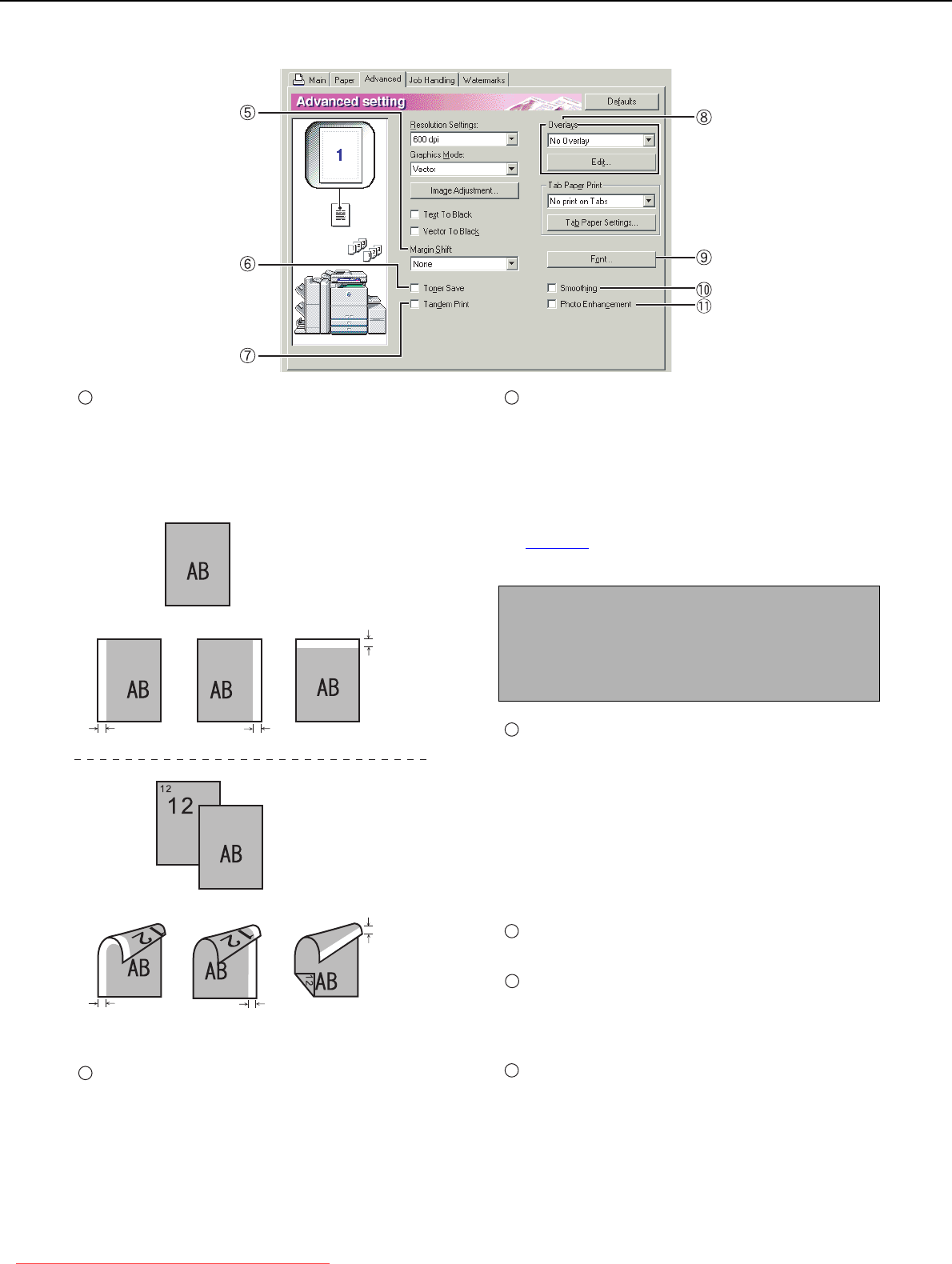 SELECTING PRINTING FUNCTIONS Settings in the [Advanced] tab (continued)