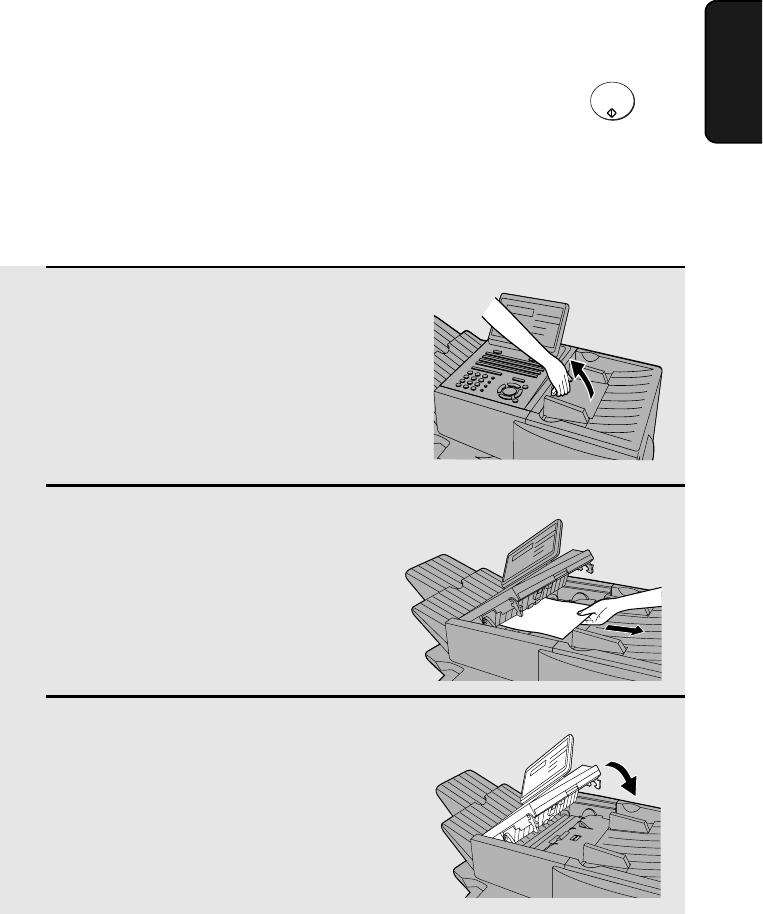 Do not try to remove a document without opening the operation panel. This