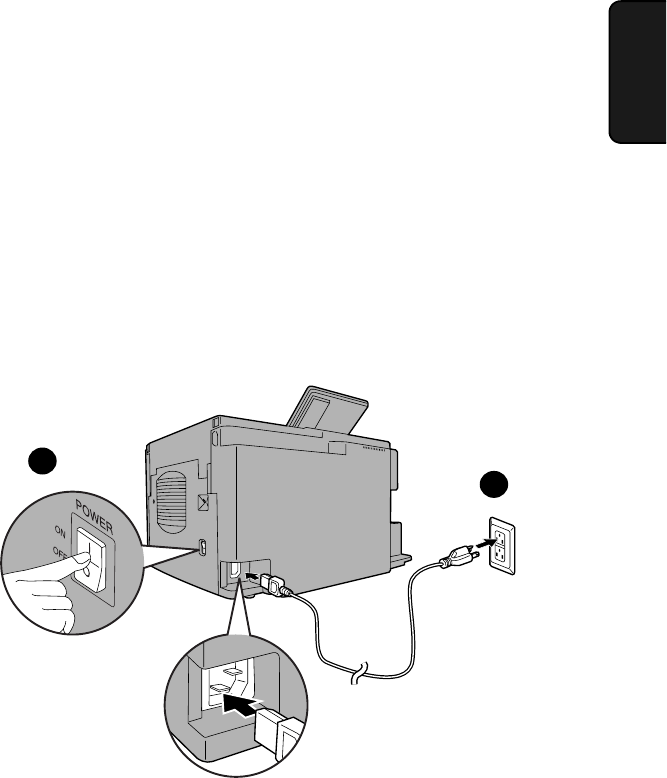 Connect the female end of the power cord to the fax machine as shown. Insert