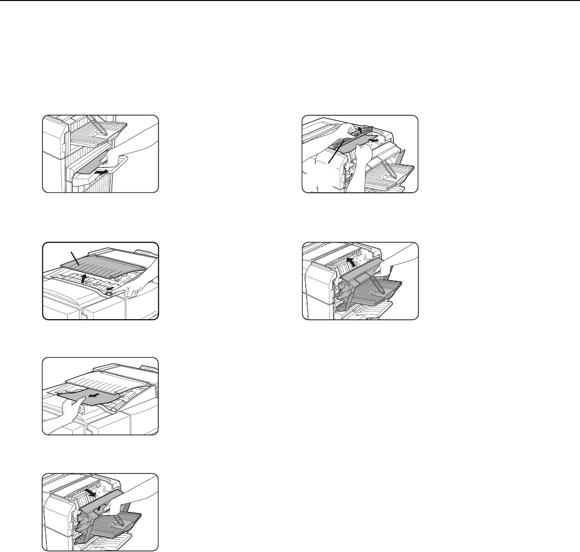 When a misfeed occurs in the finisher, remove the misfed paper following the procedure below.