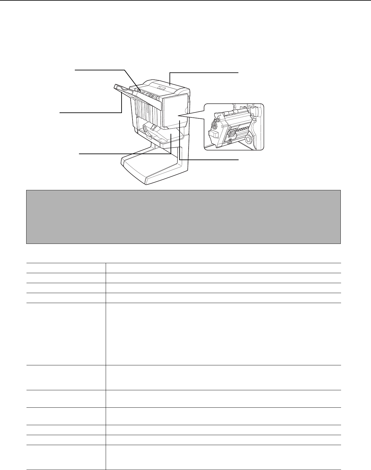● The saddle stitch finisher requires the installation of other peripheral devices in order to be functional and cannot
