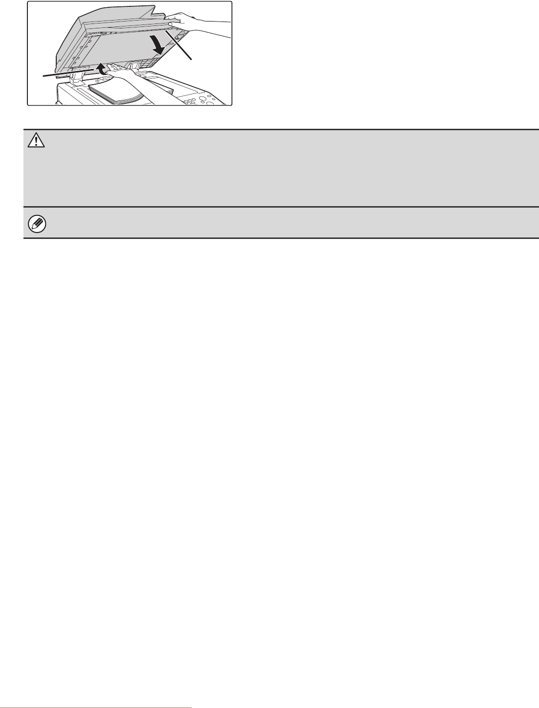 • Do not close the automatic document feeder suddenly. This may damage the automatic document feeder and your