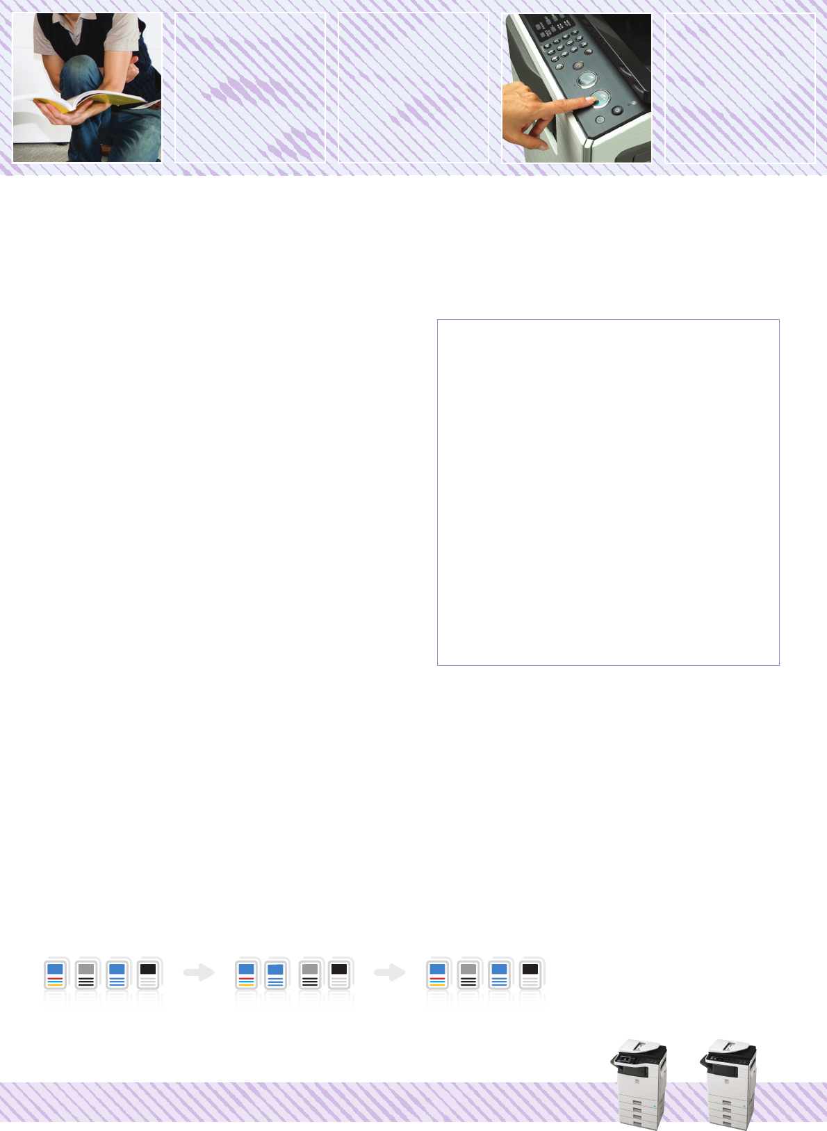 • Image editing functions - multi-shot (2-in-1), card shot, pamphlet copy,