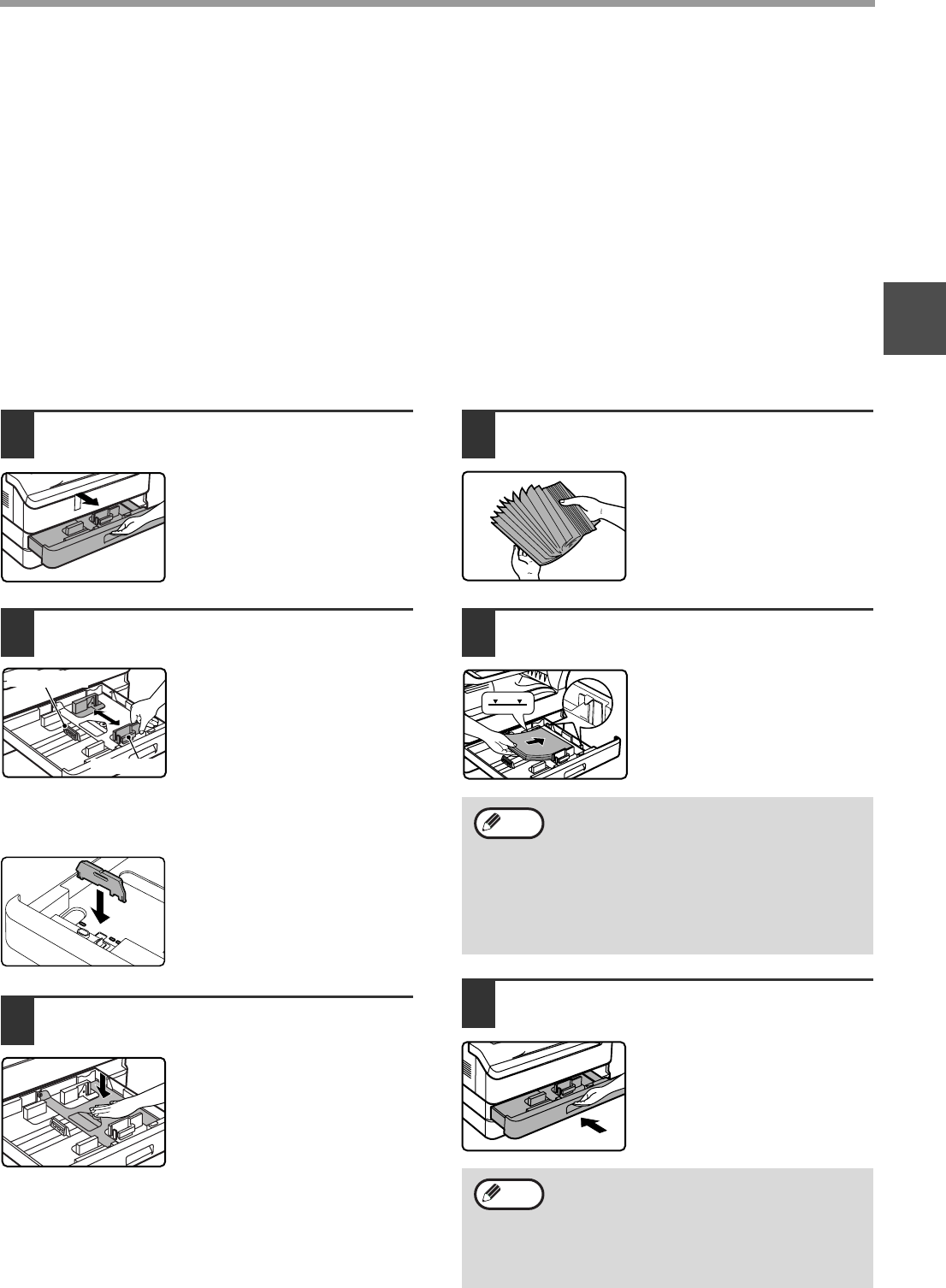 Make sure that the machine is not copying or printing, and then follow these steps to load paper.