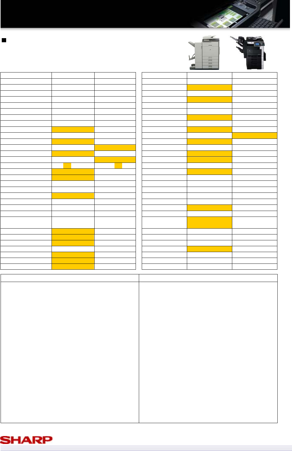 Copier Std. Mem. MB 640mb 192mb (shared) Functionality Sharpdesk
