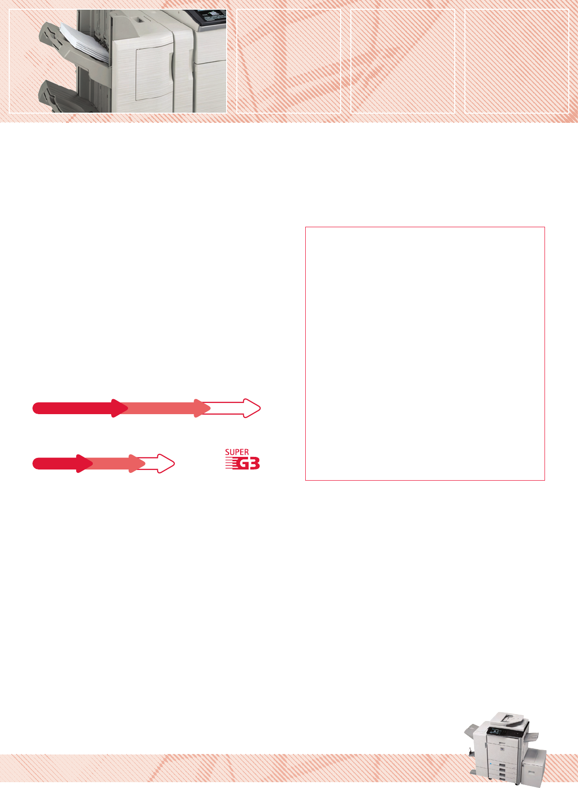 • Transmits faxes in less than three seconds.