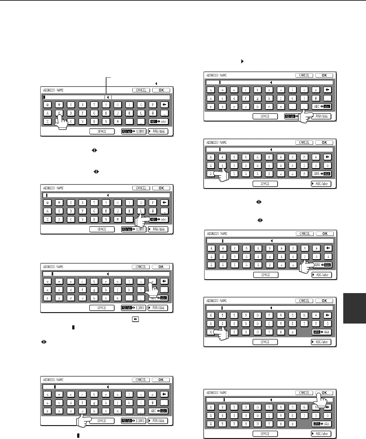 To enter or edit characters in setting screens such as auto dial key programming screens, follow the steps below.