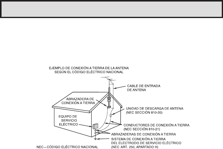 o circuitos de alimentación. Cuando instale un sistema de antena exterior, tenga muchísimo cuidado