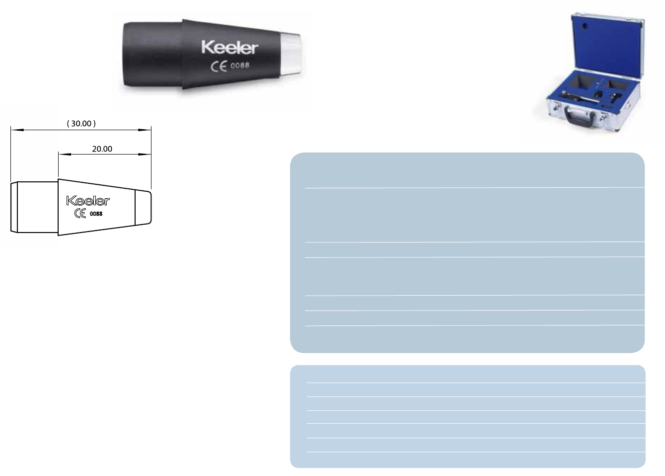 Net weights: Keeler T type 0.41 kg (without accessories)
