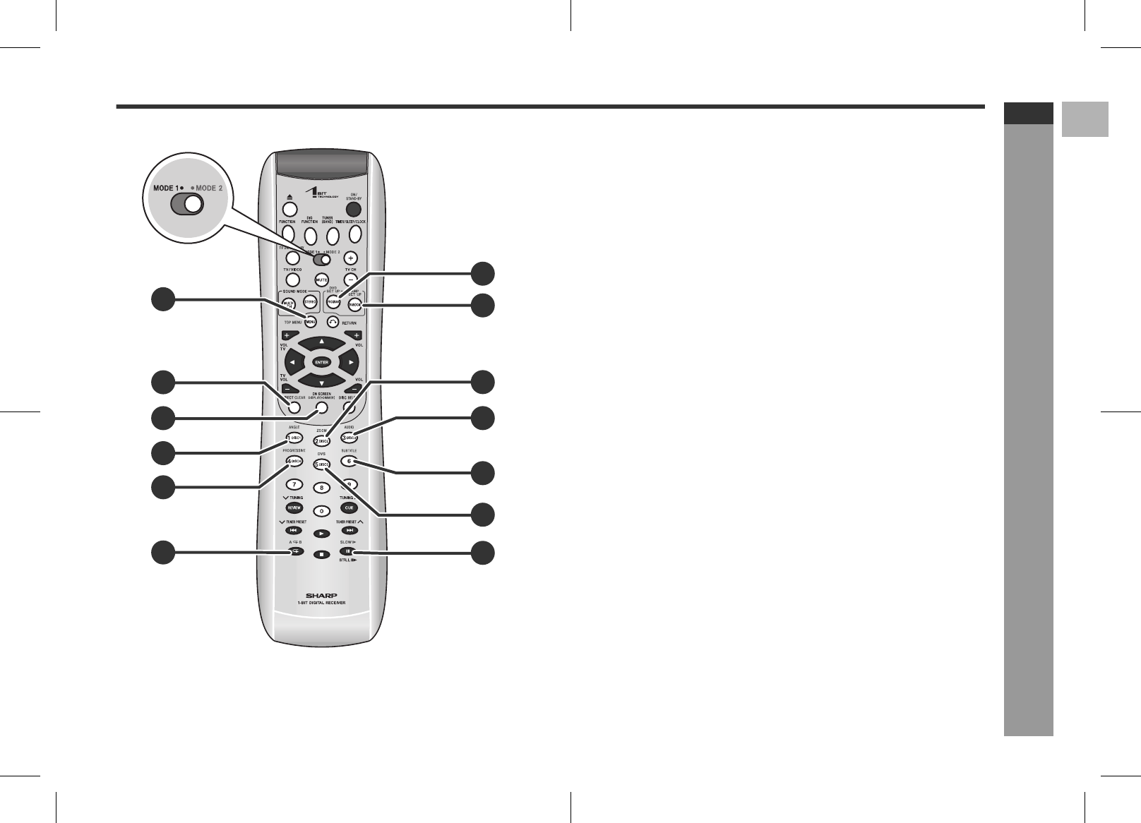 Set the MODE 1/MODE 2 switch to MODE 2 and press the following buttons (indi-