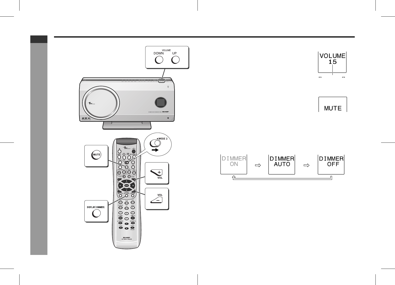 Set the MODE 1/MODE 2 switch to MODE 2 and hold down the DISPLAY (-DIMMER)