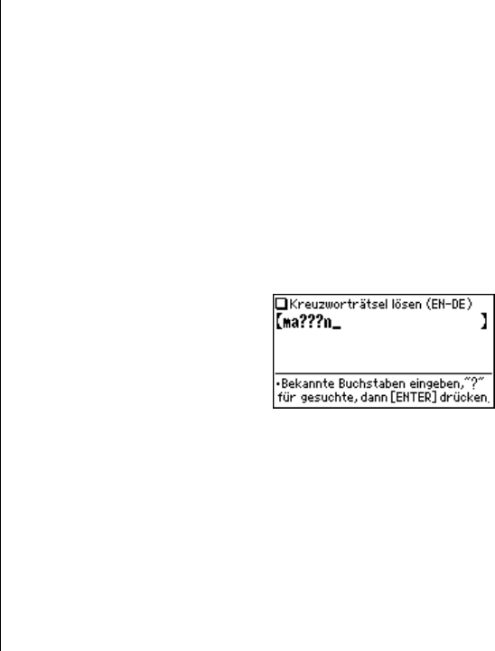 . Der Eingabebildschirm der Funktion „Kreuzworträtsel lösen“