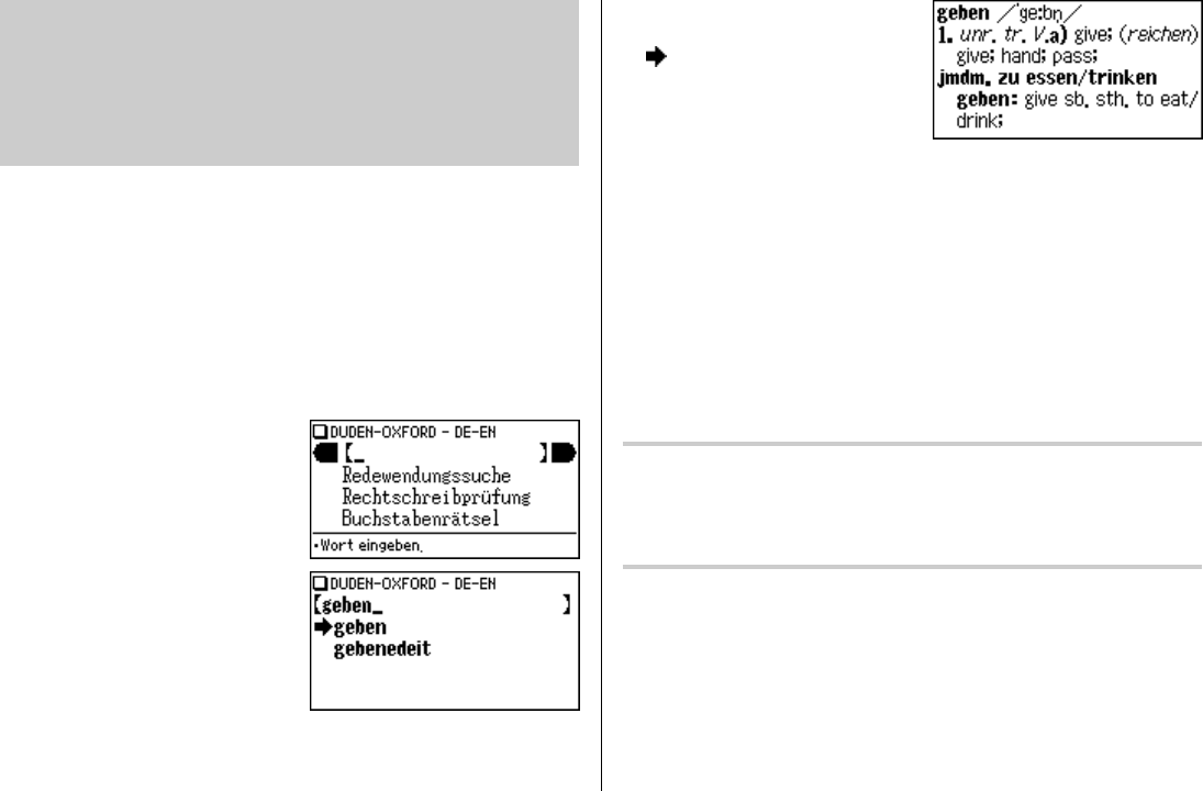 • Um nach einem neuen Wort zu suchen, geben Sie dieses einfach ein oder