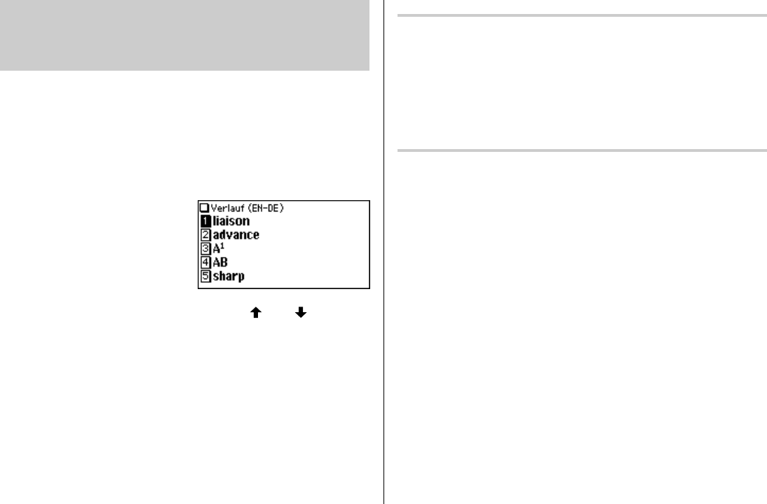 • Jedes Wörterbuch verfügt über eine Verlaufsliste. Außerdem wird eine
