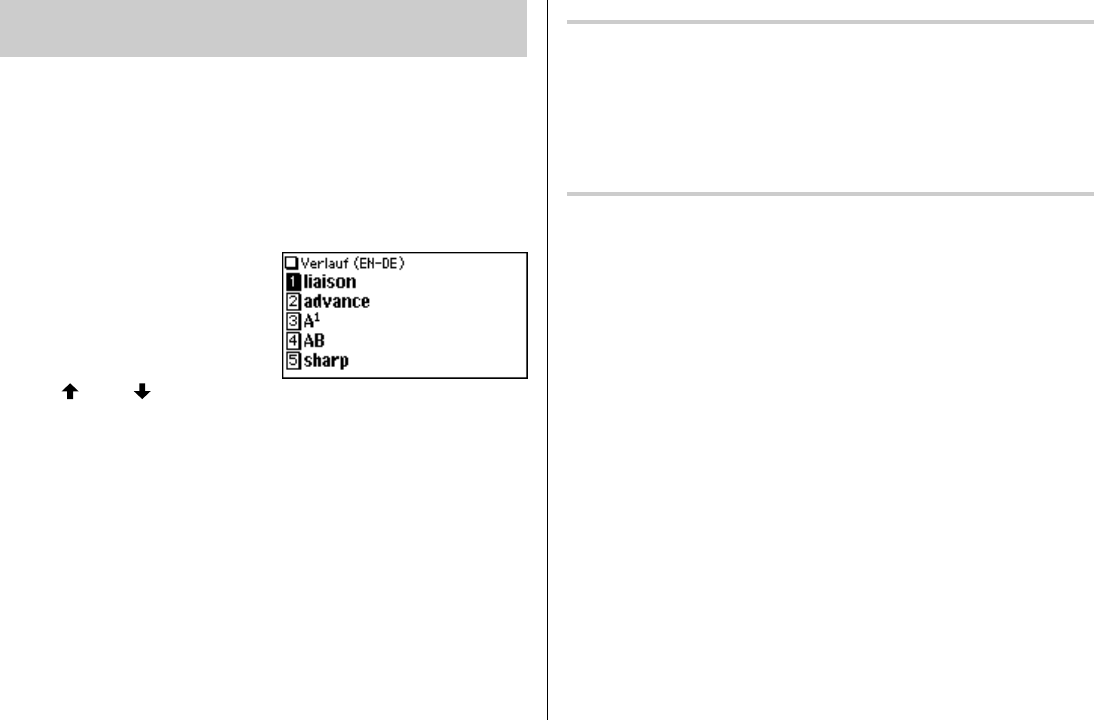 • Selecting ‘Nur EN-DE’, ‘Nur DE-EN’ or ‘Nur THES’ will also delete the history