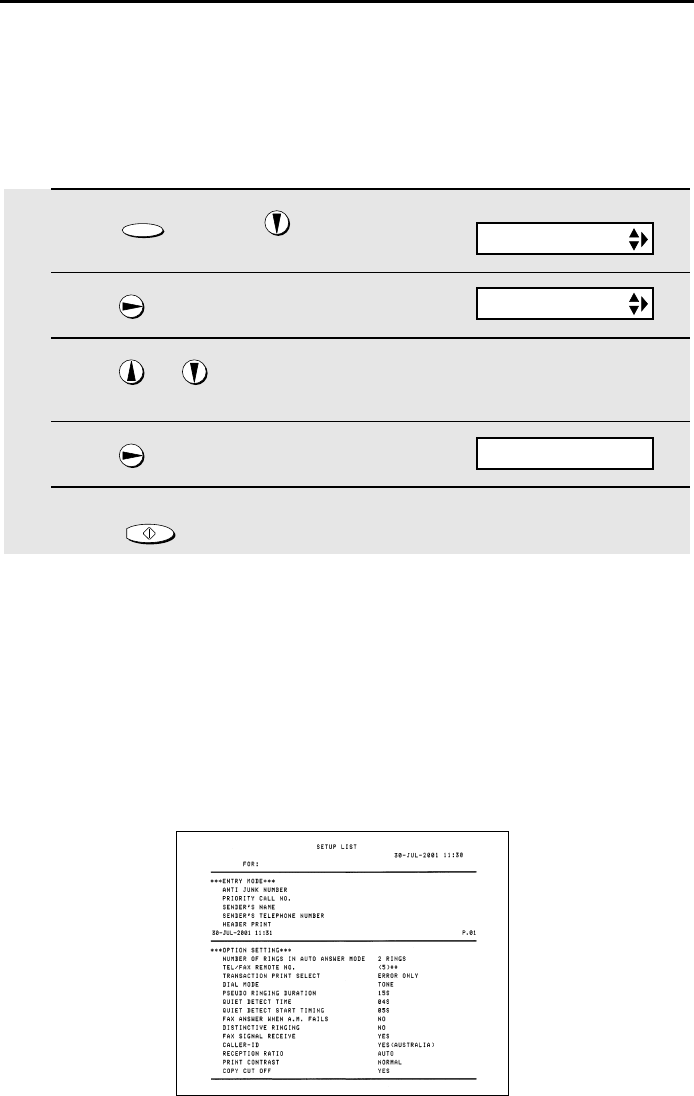 machine. The lists are described below. To print a list, follow these steps.