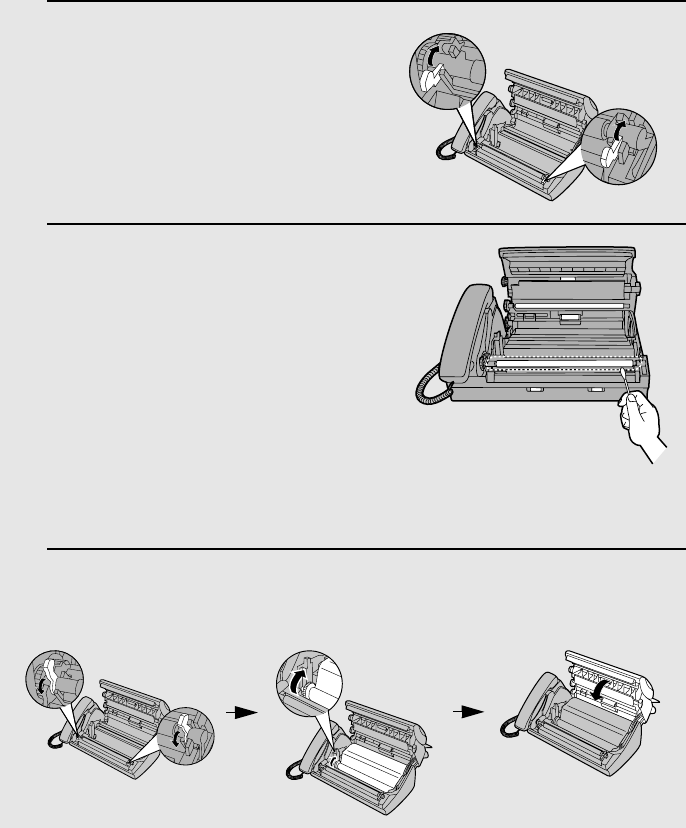 4 Flip down the green levers on each side of the white roller. Rotate the