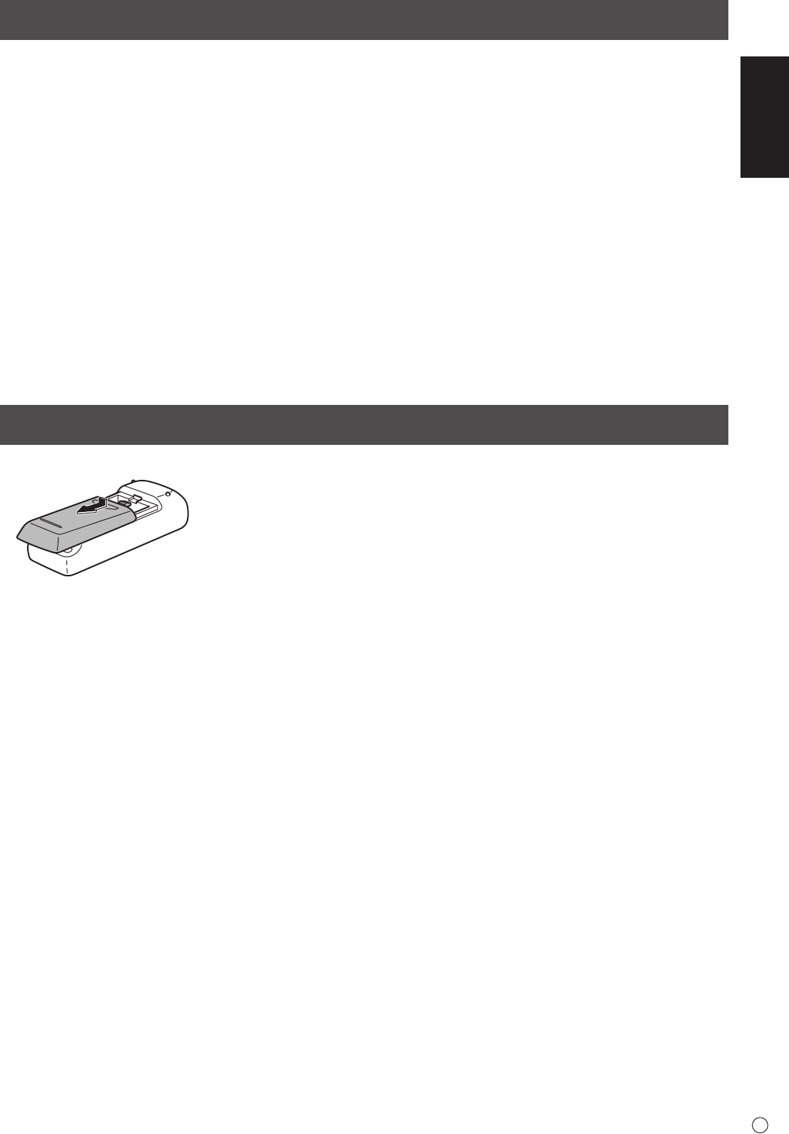 2. See the instructions in the compartment and put in the supplied batteries (R-6 (“AA” size) x 2) with their plus (+) and minus (-)
