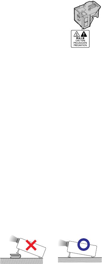 Warning about placing the projector in