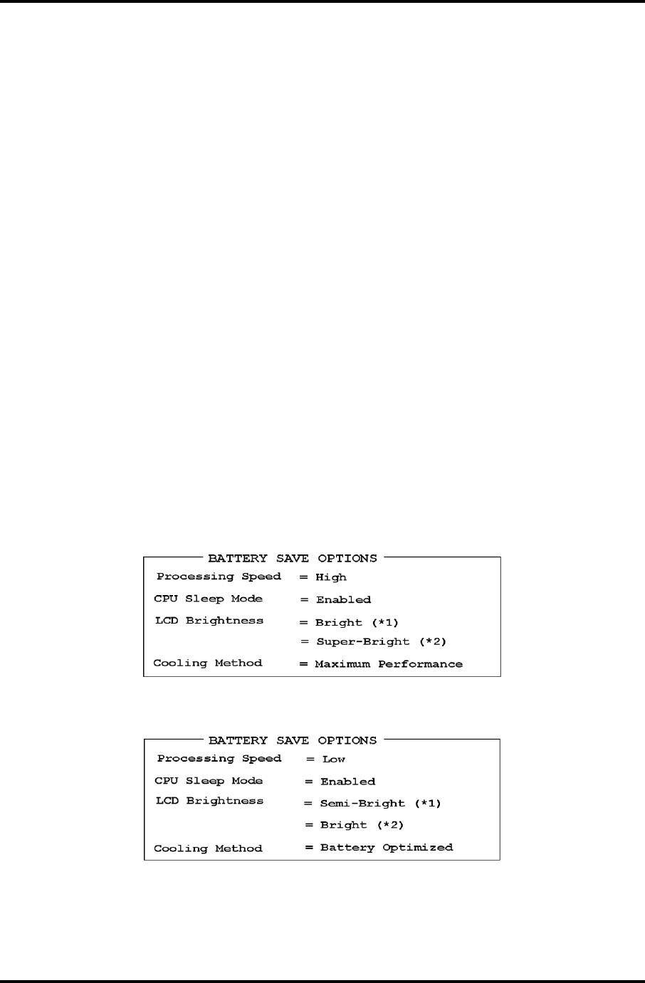 This option is used to select Full Power, Low Power or User Setting of the battery save