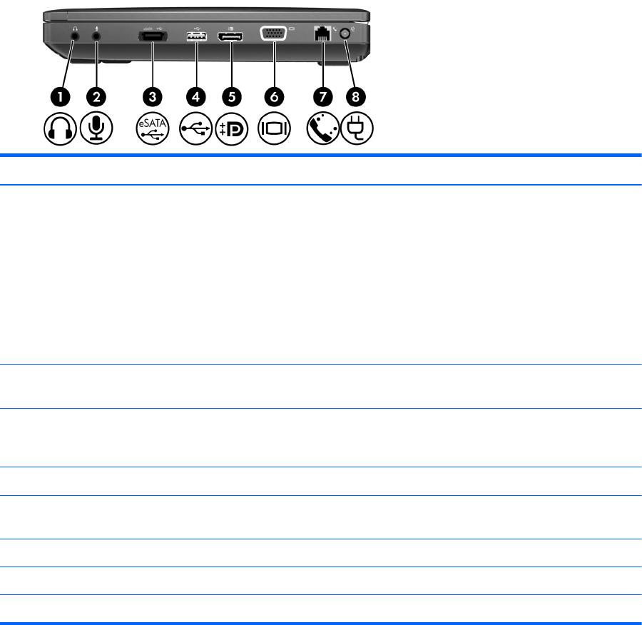 (3) eSATA/USB 2.0 combo port Connects a high-performance eSATA component, such as