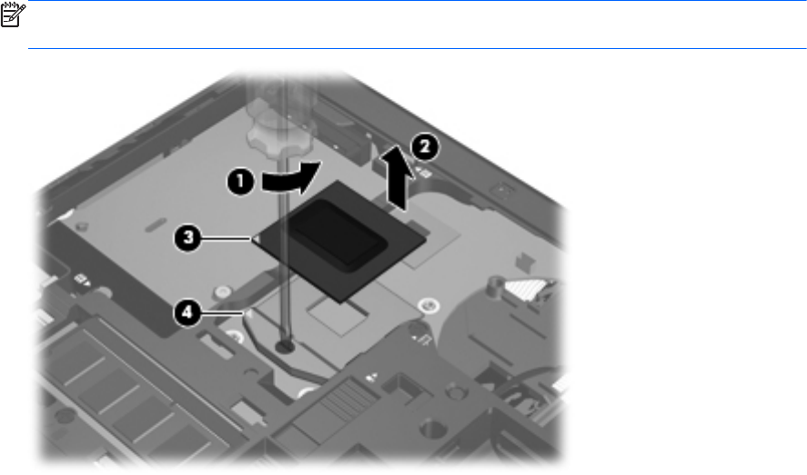 NOTE: The gold triangle (3) on the processor must be aligned with the triangle icon (4)
