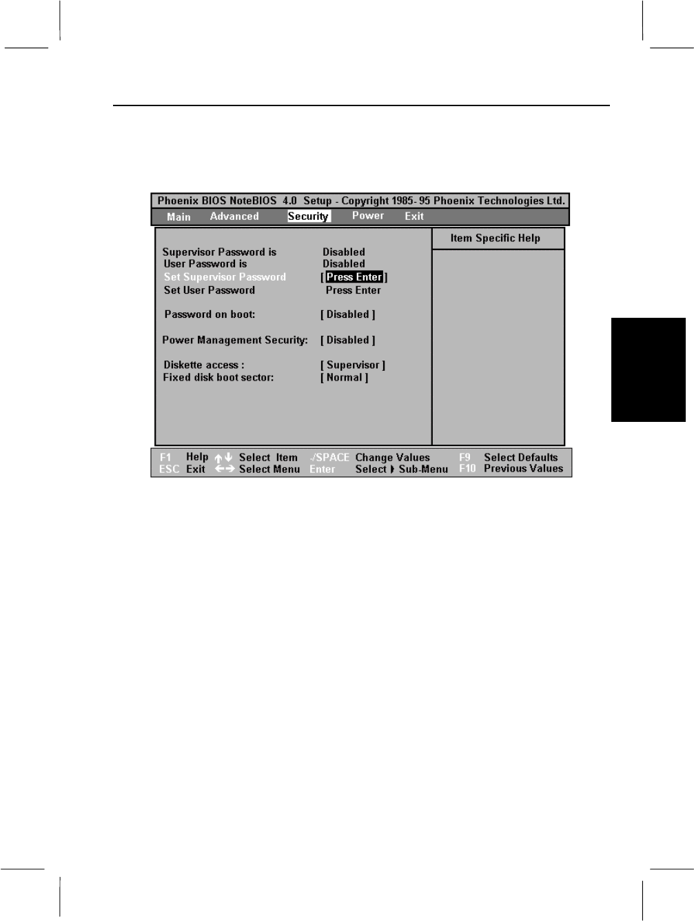 Set Supervisor Password Select this field and press Enter to set a password.