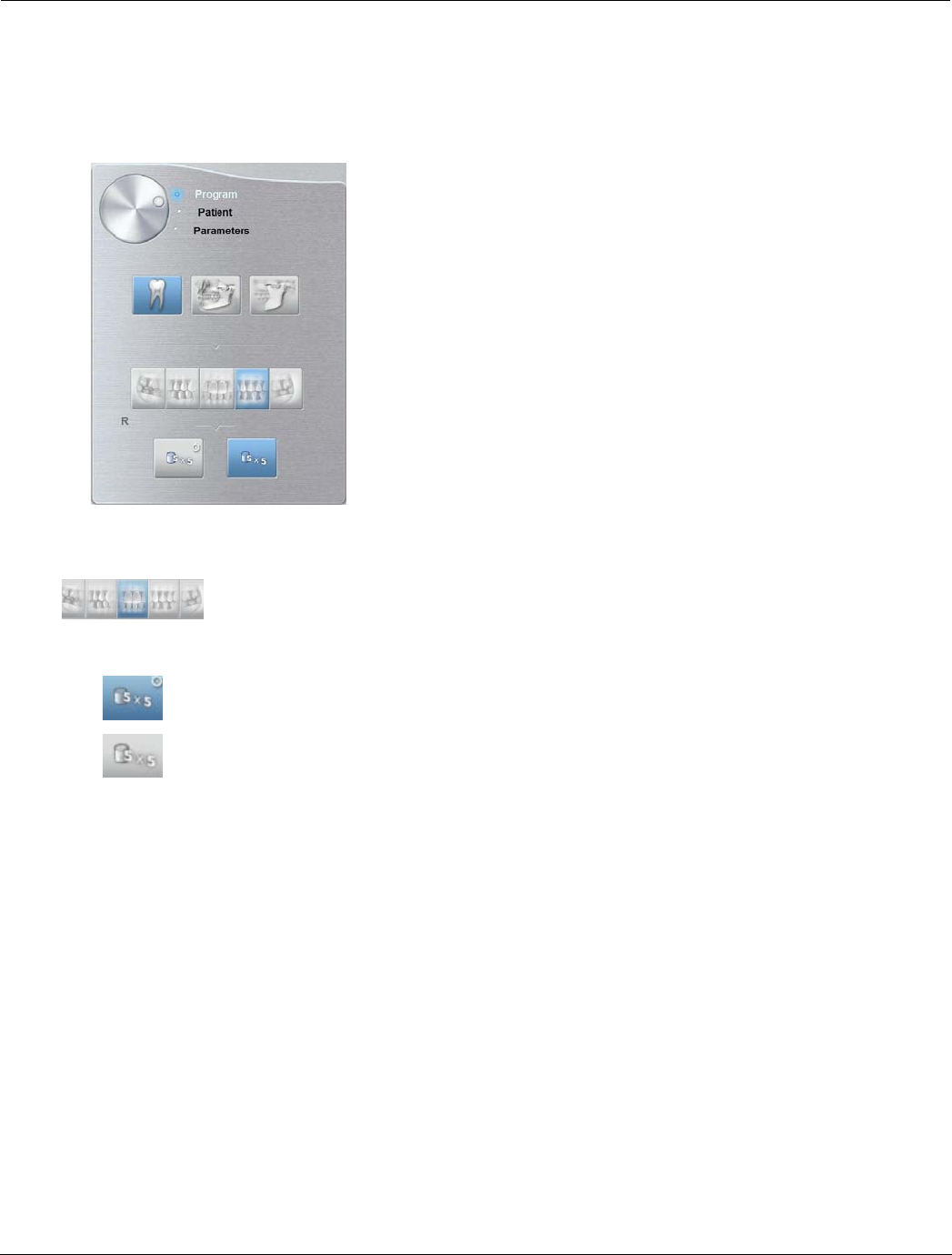 Teeth buttons: Select a group of teeth to be included in the exam. Upper and