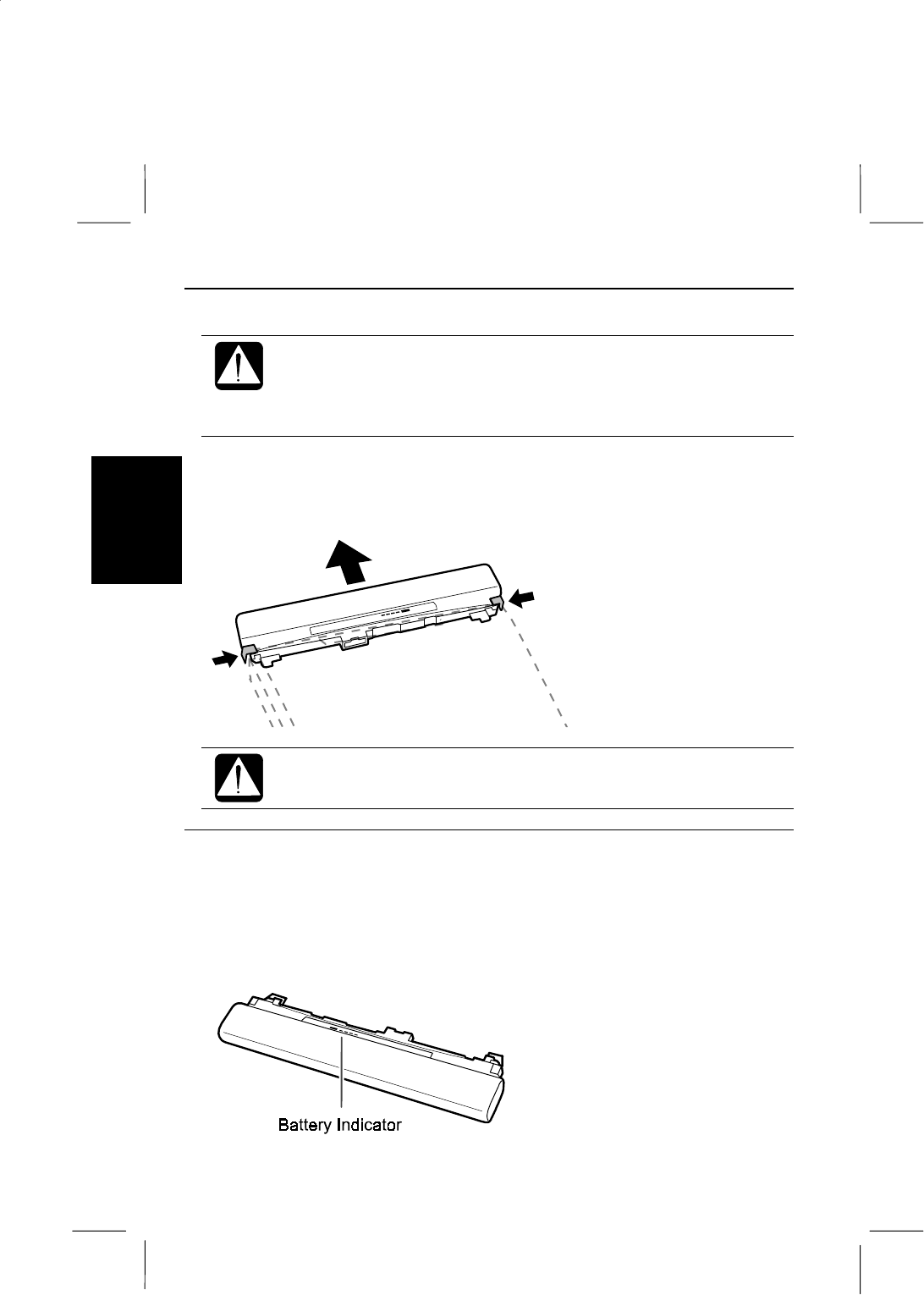 standard battery pack) with the battery indicator. Press the button on the right of the