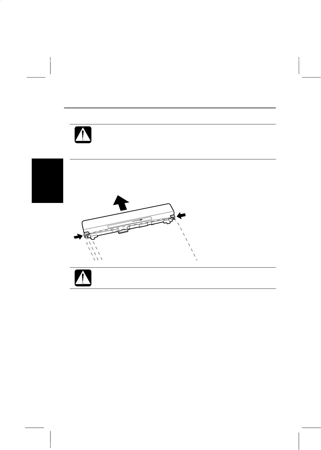 Remove the external battery pack by pressing the buttons on each end of the battery